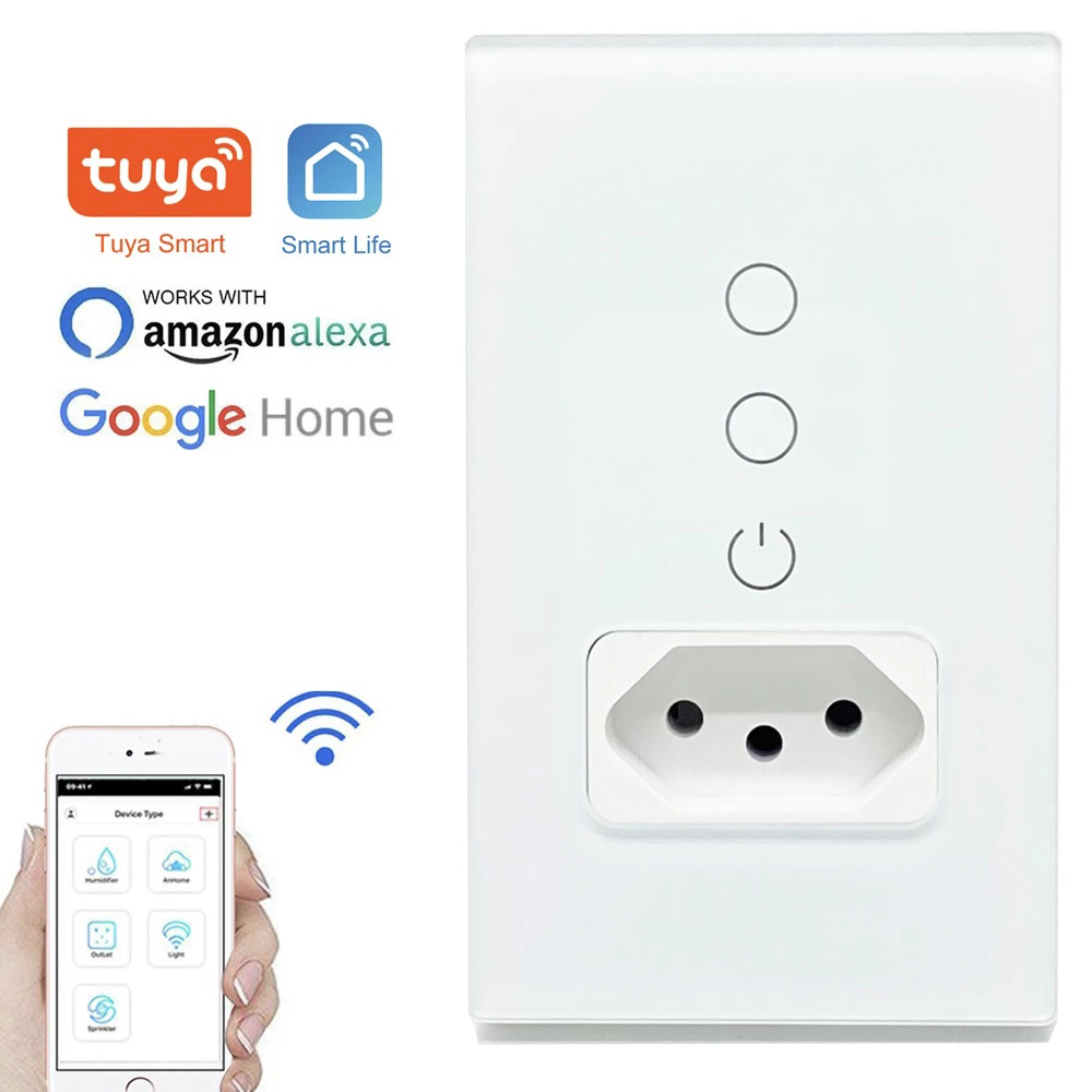 Hooanke WiFi Smart Tuya Light Switch Intelligent Wall Socket Brazil Plug Outlet White Black Glass Panel Alexa Google Home. Tuya APP Smart Life, 10A /90-250V AC 60Hz, Combo Style.