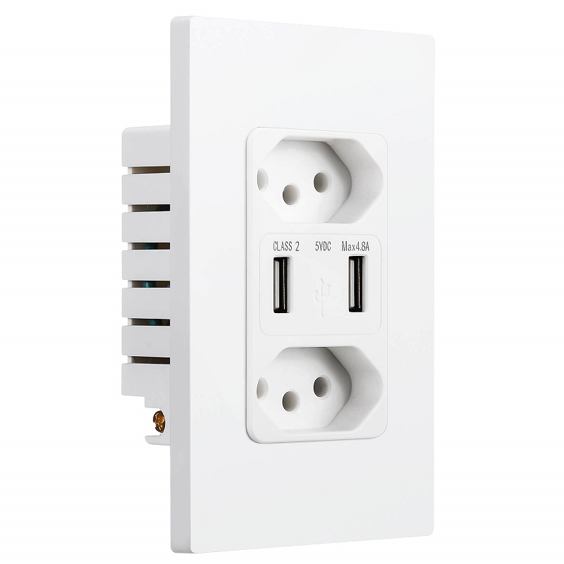 Hooanke Dual USB Brazil Plug Wall Socket Home Power Supply Outlet AC Socket 5V 4.8A Fast Charging. We used the IntelliChip technology to recognize connected device to deliver the