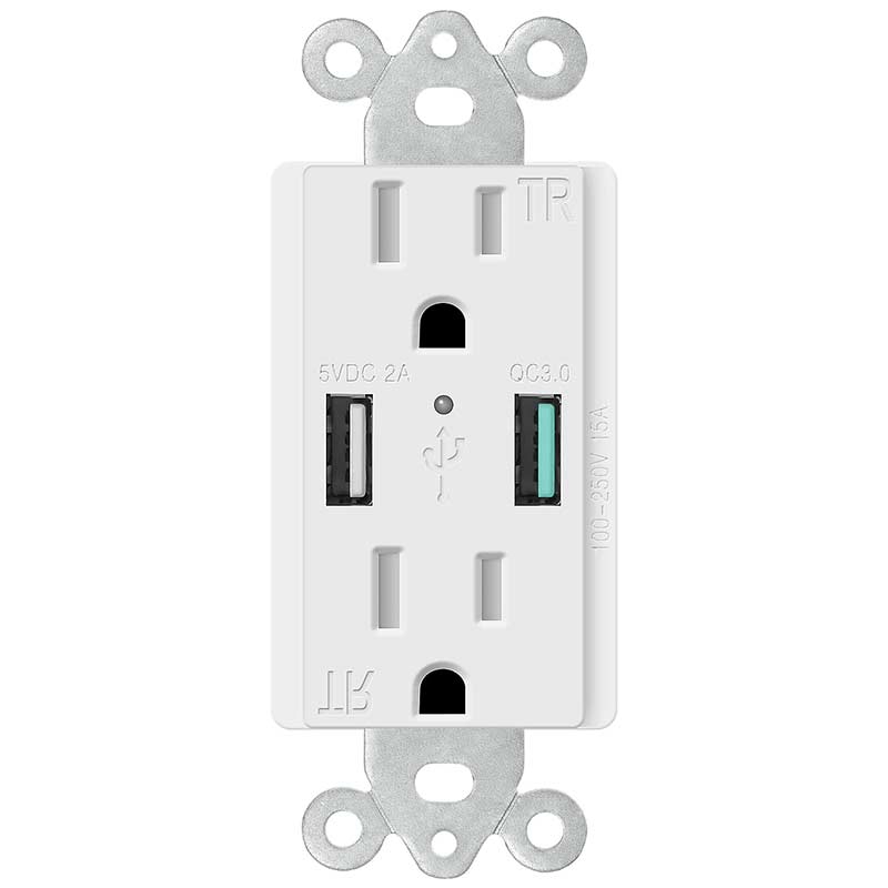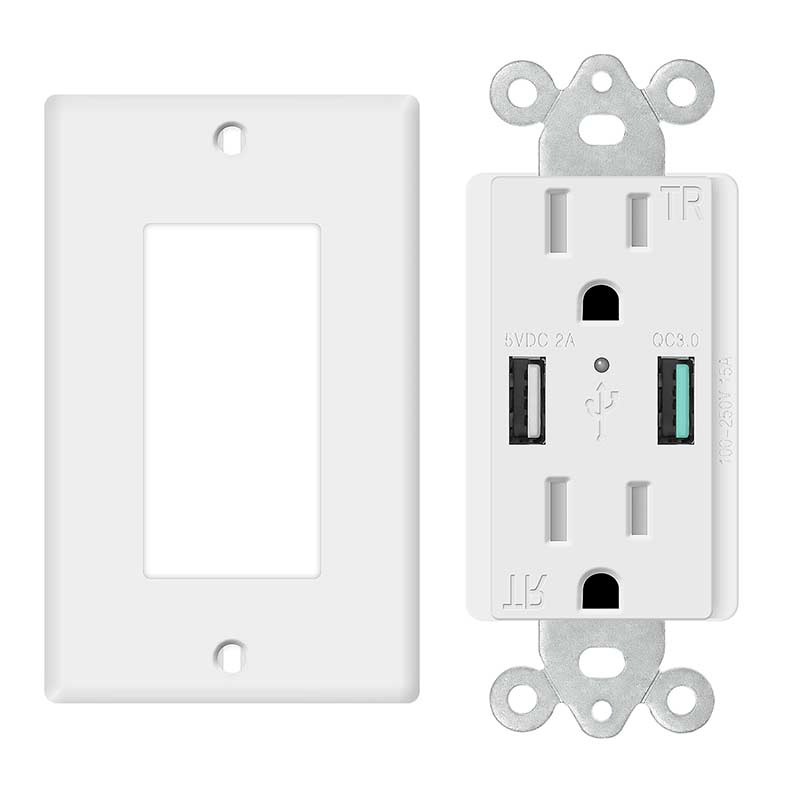 This QC3.0 wall outlet with total output power: 20W and the main power chip: INN2215K, QC3.0, high safety coefficient.