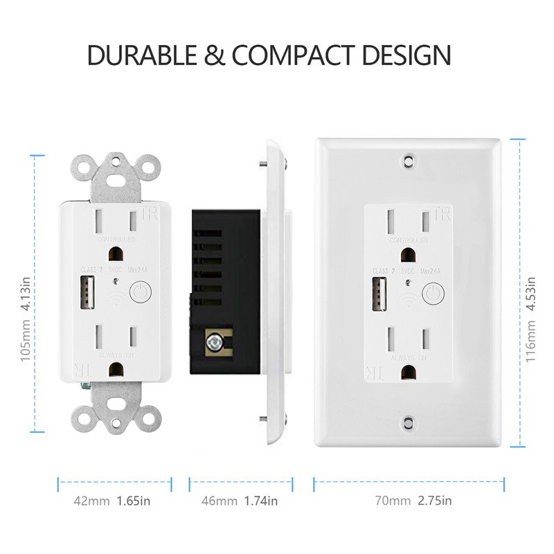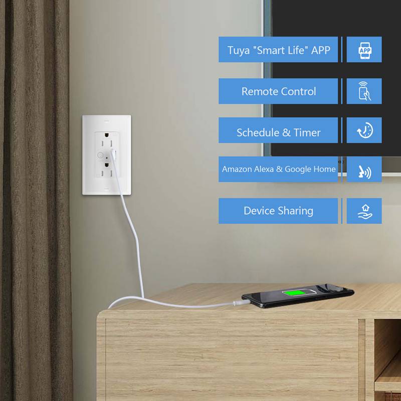 Hooanke`s KS-15TW USB Charger Outlet with WiFi function provides an easy way to charge your USB devices and control your appliances from anywhere. Connect this smart USB charger outlet to your Wi-Fi network for full control of your smart receptacle from anywhere. Complete your home automation by replacing any standard in-wall outlet with this smart Wi-Fi USB outlet. Control your appliances with a mobile device and the Tuya app.